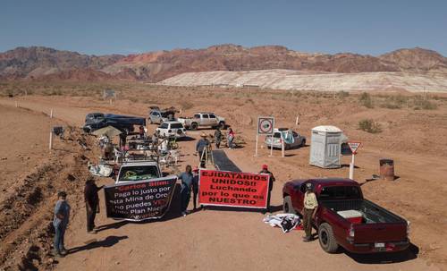 San Felipe, BC., Ejidatarios propietarios de alrededor de 3 mil 500 hectáreas que alquilan a Grupo Frisco para la extracción de oro y plata en la mina Real de Ángeles bloquean desde el 27 de enero el acceso al yacimiento, luego de que se empantanaran las negociaciones para renovar el contrato de arrendamiento.
